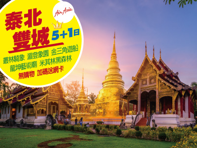 【亞航清邁】泰北雙城~ 湄登叢林騎象 金三角遊船 龍坤藝術廟 夢幻蘭谷莊園 米其林 泰式饗宴 5+1日
