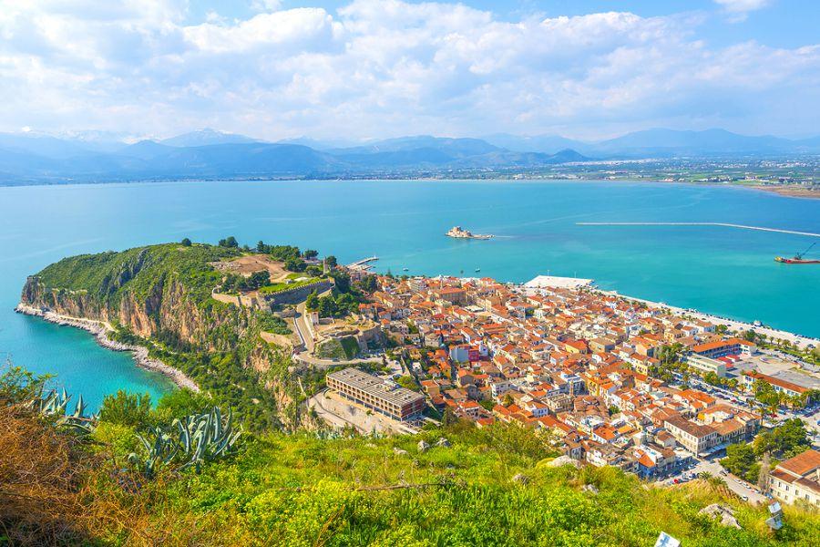 【奈普良Nafplion】是希臘第一座首都,歷史與浪漫交織的海港小鎮 納普良是希臘最迷人的小鎮之一,擁有豐富的歷史與獨特的建築風情。這座小鎮以其石板街道、新古典主義建築、迷人的咖啡館和充滿浪漫氛圍的海濱著稱。 登上俯瞰小鎮的帕拉米蒂城堡,您將能欣賞到愛琴海一望無際的美景。另一座建於海中央的小島堡壘布爾齊城堡則為這座古色古香的小鎮增添了神秘色彩。
