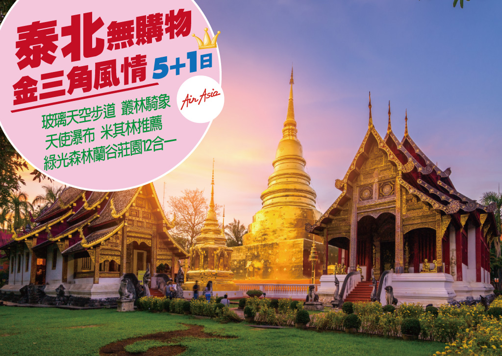 【無購物】泰北金三角風情~玻璃天空步道 叢林騎象 天使瀑布 綠光森林 米其林 泰式帝王宴 5+1 日