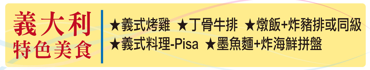 4.團體旅行中安排在中國餐廳用餐時,因歐洲各大城市之中國餐廳,受限於材料來源、當地飲食民情及廚師素質,實無法與國內相比較。若無法盡善盡美盡如您意,尚祈見諒!