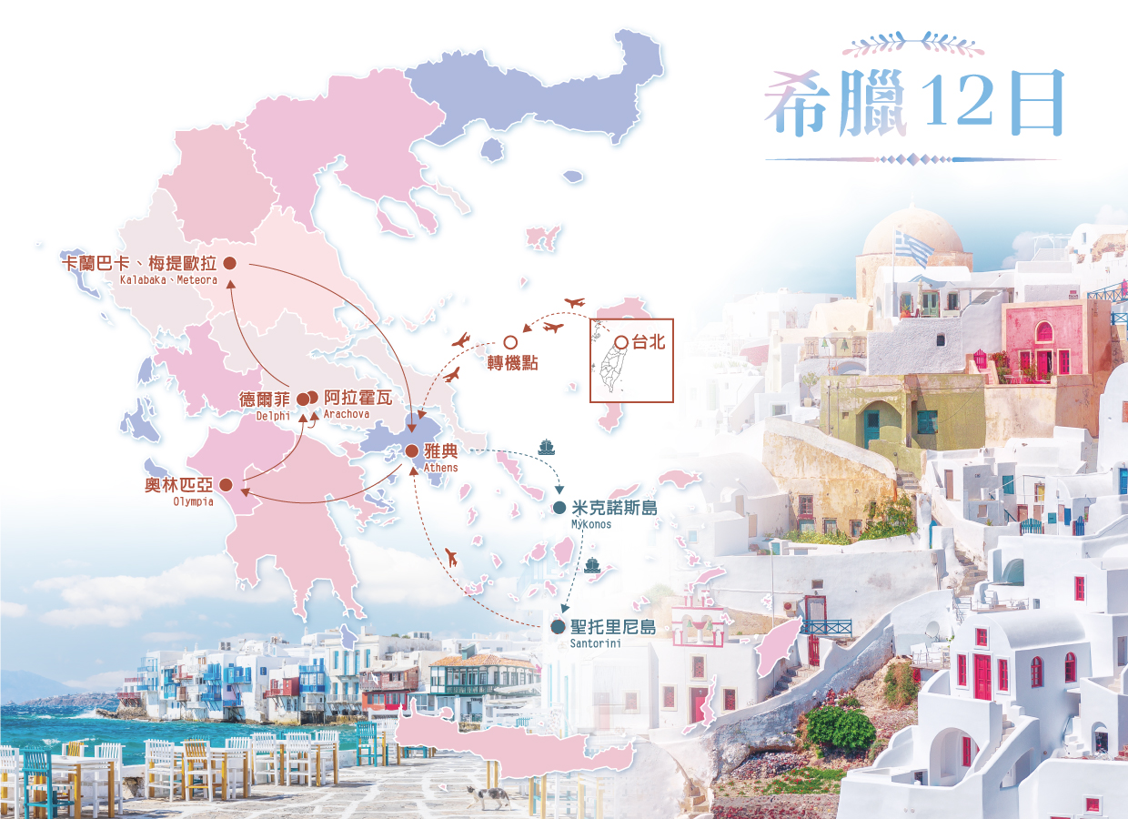 【希臘夢幻雙島 超值12日】聖托里尼兩晚 米克諾斯 世界最美夕陽伊亞 雅典衛城 天空之城