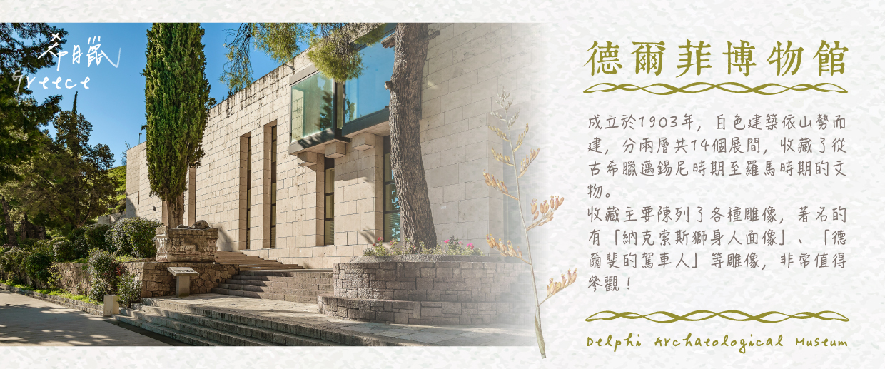 【德爾菲博物館】(入內參觀含官方導覽)是一個展示古希臘文明輝煌歷史的場 所。博物館內收藏了大量來自德爾菲的考古文物,包括雕塑、陶器、銅器等,展品涵蓋從古代至新石器時代的不同時期,展示了這片神聖土地上曾發生的文化和宗教 活動。其中青銅時代的精美雕塑與當時的祭祀物品,讓人能夠深入了解古希臘人對神祇的敬仰及其生活方式。博物館的展覽不僅揭示了古希臘的藝術成就,也讓人感 受到這些文物在歷史洪流中的重要地位。走進德爾菲博物館,仿佛穿越回古希臘的黃金時代,讓每一件展品都講述著古文明的故事,深刻體現了德爾菲作為神諭聖地 的歷史價值與文化底蘊。