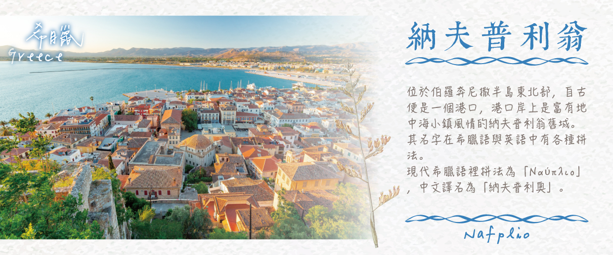 【納普良小鎮Nafplio】是希臘第一座首都,歷史與浪漫交織的海港小鎮 納普良是希臘最迷人的小鎮之一,擁有豐富的歷史與獨特的建築風情。這座小鎮以其石板街道、新古典主義建築、迷人的咖啡館和充滿浪漫氛圍的海濱著稱。 登上俯瞰小鎮的帕拉米蒂城堡,您將能欣賞到愛琴海一望無際的美景。另一座建於海中央的小島堡壘布爾齊城堡則為這座古色古香的小鎮增添了神秘色彩。