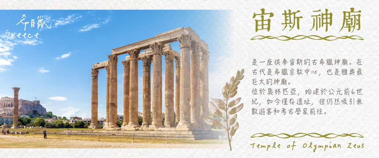 【宙斯神殿Temple of Olympian Zeus】 是古希臘最壯麗的神殿之一,建於公元前6世紀,奉獻給宙斯,古希臘神話中的主神。這座神殿的規模宏大,是當時世界上最大的神殿之一,長久以來一直被視為古代建築的瑰寶。在我們的行程中,會安排您進入宙斯神殿參觀,親眼目睹這座雄偉的建築遺跡。雖然今天神殿大部分已經毀壞,但仍能見到17根矗立的巨大柱子,這些遺存仍顯示出當時建築的宏大與精緻。(下車參觀)
