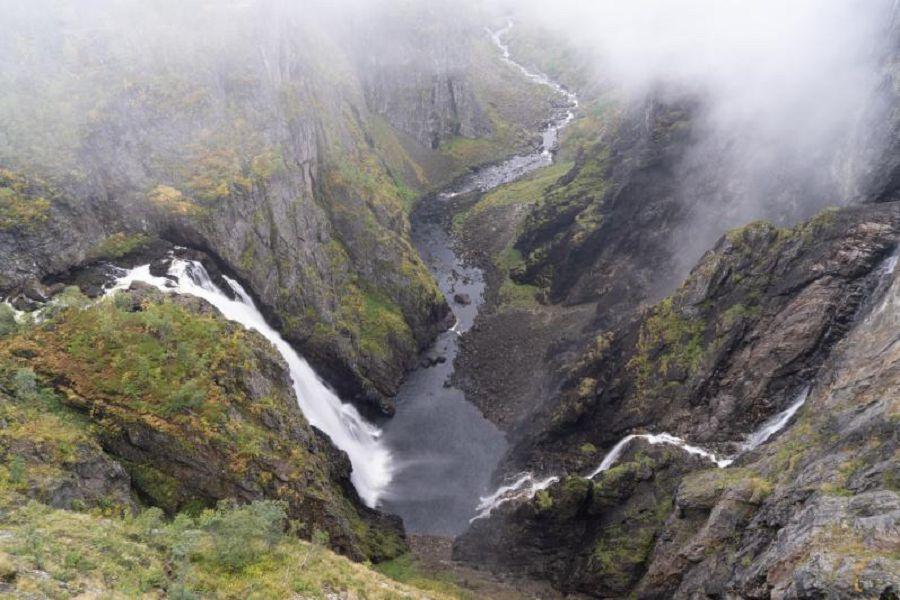 【菲爾鈴瀑布Voringfossen】位於挪威哈丹格峽灣地區,是全國最著名、最具代表性的瀑布之一。瀑布自高原傾瀉而下,落差達182公尺,其中垂直落差約145公尺,氣勢磅博。自19世紀末起便成為挪威最早開放觀光的自然景點之一。現今在瀑布周邊設有多處觀景台與步道,遊客可以從不同角度俯瞰壯麗水勢。最引人注目的設計是2020年啟用的空中步橋,橋面橫跨瀑布上方,讓人猶如行走在水流之上,帶來驚險又震撼的體驗。