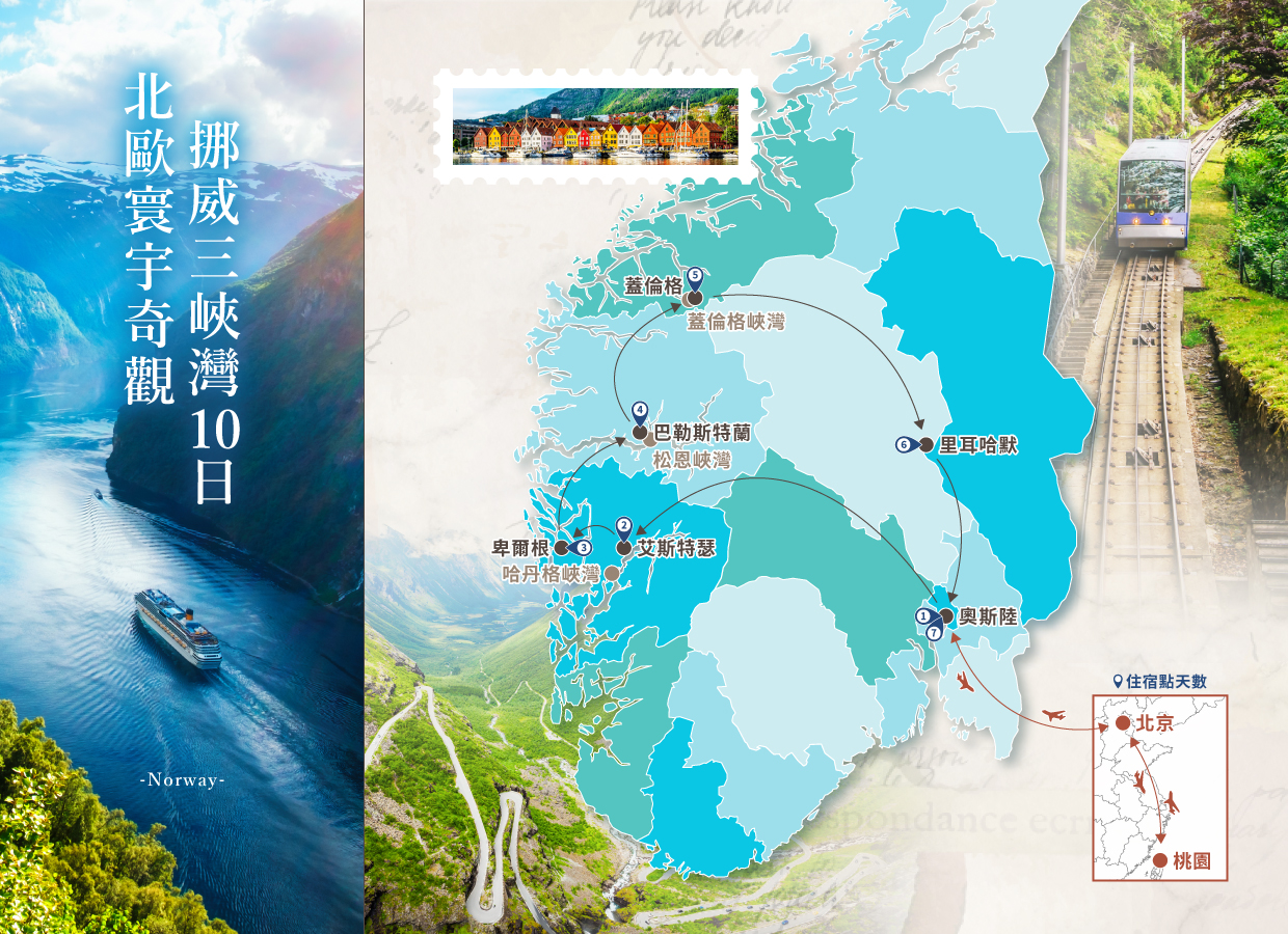 【北歐寰宇奇觀 挪威三峽灣10日】挪威縮影 卑爾根登山纜車 冰河四輪傳動車 高山景觀火車 百年貴族飯店