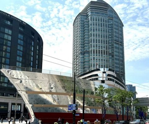 【LV巨輪路易號】一艘“巨輪”駛進了靜安南京西路商圈——隨著一塊白色幕布揭開,位於上海興業太古匯的路易威登全新概念地標“路易號”露出全貌,瞬間化身熱門打卡點,吸引過路市民駐足拍照。這是繼巴黎、紐約後,LV全球第三座以硬箱為靈感的藝術地標,且是其中唯一採用“巨輪”造型的。這艘“巨輪”的設計靈感源自19世紀路易威登為越洋旅程打造硬箱的傳奇歷史,也代表了上海作為“東方門戶”的港口文化。船身與船首以金屬Monogram圖案裝飾,盡顯優雅;層疊式頂層結構形似經典硬箱,彰顯著LV品牌精髓。