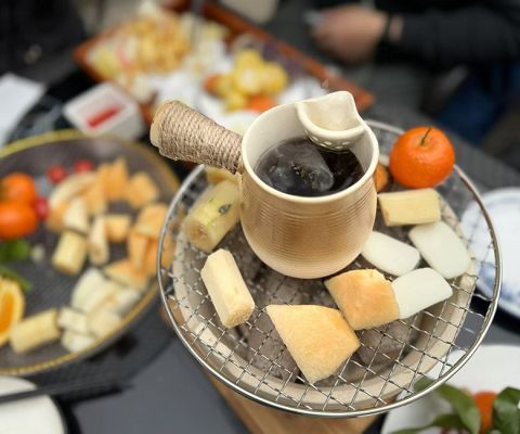 【圍爐煮茶】在愜意的午後,邀您一同體驗圍爐煮茶的愜意時光。我們為您準備了新年圍爐下午茶,感受茶香四溢。爐火旁,茶壺輕輕冒著熱氣,茶香與炭火的香氣交織在一起,享受一個悠然自得的下午。