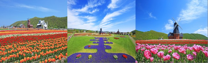 【上湧別鬱金香公園】在上湧別鬱金香公園內,爭相盛開的鬱金香,花名皆取自童話中「金太郎」、「桃太郎」、「輝夜姬」、「白雪公主」,還有從原產地荷蘭直接進口的稀有品種,合計多達120萬株。
