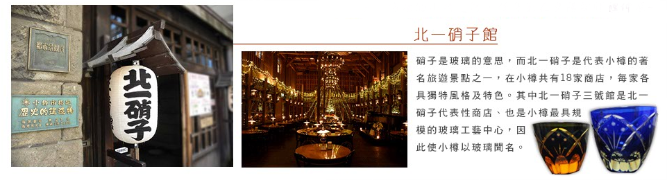 【北一硝子館】為代表小樽的玻璃工藝店,利用舊倉庫改建的3號館中,展示全世界最精緻的玻璃工藝品與油燈。有來自世界各地的玻璃製品及飾品,可自由採購。