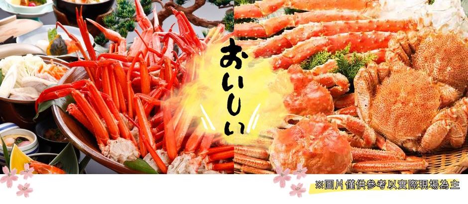 ※備註:若因三大蟹缺貨或客滿無法提供時,晚餐則改為涮涮鍋吃到飽,並退費3000日幣。敬請見諒。