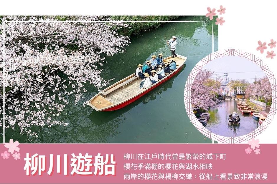 【柳川遊船】一條細長蜿蜒的小河,沿岸花朵、綠樹及紅瓦古建築,古色古香。著名詩人、童話作家北原白秋說《水鄉柳川就是生我的故鄉,是我吟誦詩賦的泉源》,要體會水鄉之美,唯有船伕擺渡式的泛舟巡訪,才能進入白秋詩篇的世界。