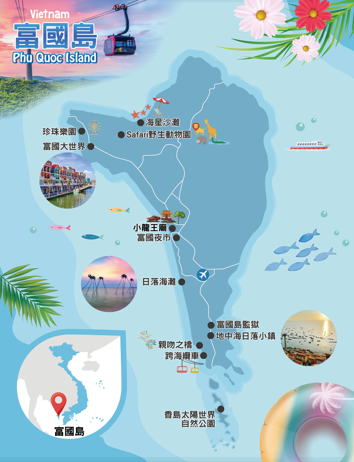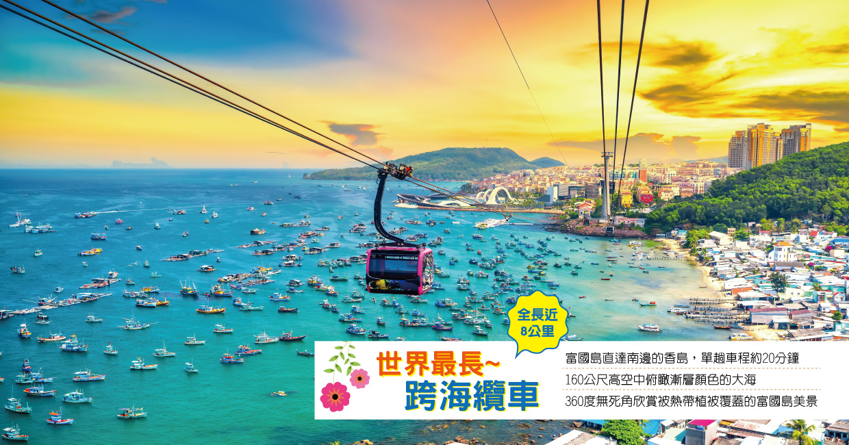 ★【世界最長跨海纜車】不僅是一條跨海的纜車線,它本身就是一次前所未有的奇妙之旅。乘坐纜車,能讓你從空中眺望富國島的美麗海岸,無論是水上活動還是森林探險,都能一一輕鬆連接。