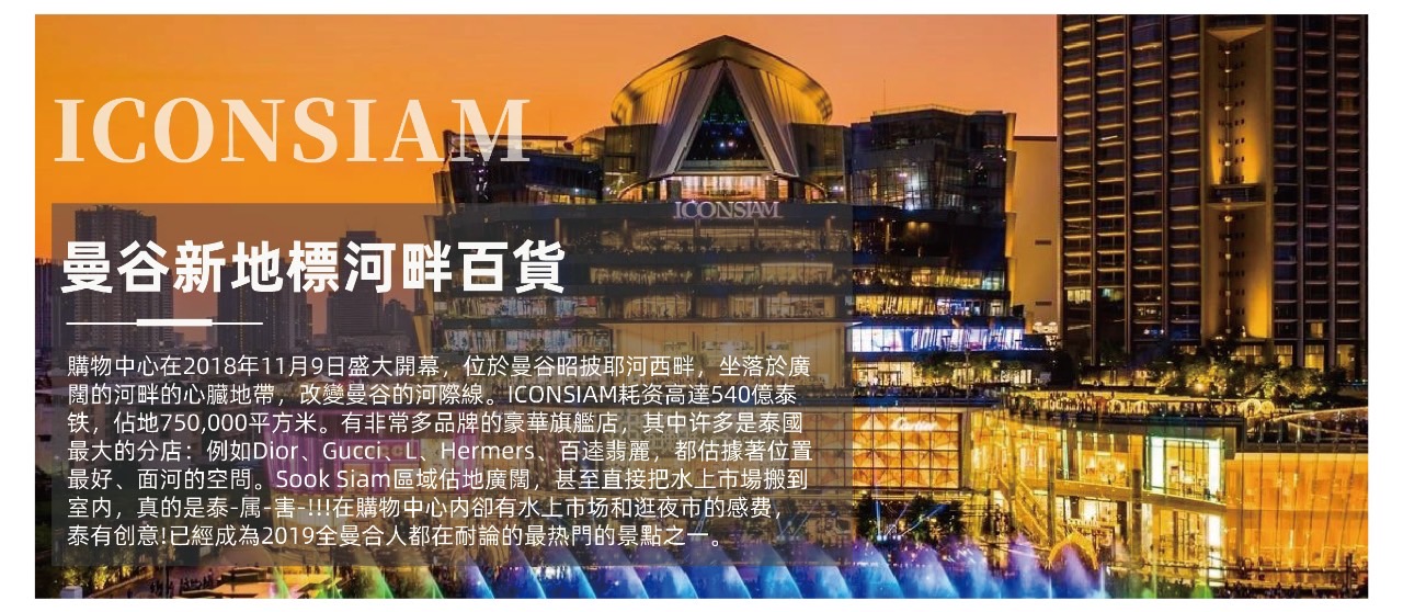 【Iconsiam暹羅新天地】著名的水上市場一直是旅客們前往泰國曼谷旅遊或自由行必去的景點之一,而琳瑯滿目的特色百貨更是曼谷的特色,而暹羅天地 ICONSIAM 結合了水上市場與百貨公司這兩項元素,將水上市場搬進室內,成為泰國第一間擁有室內水上市場的百貨公司,裡面不僅有各大知名品牌、還有許多泰國美食,最棒的是在百貨公司還能吃到水上市場的平價小吃,暹羅天地也與日本高島屋結合,提供許多美妝與生活用品,還可以到暹羅天地河濱公園欣賞美麗的水舞表演,不僅能欣賞到昭皮耶河的美景,還能體驗泰國文化,一舉兩得!