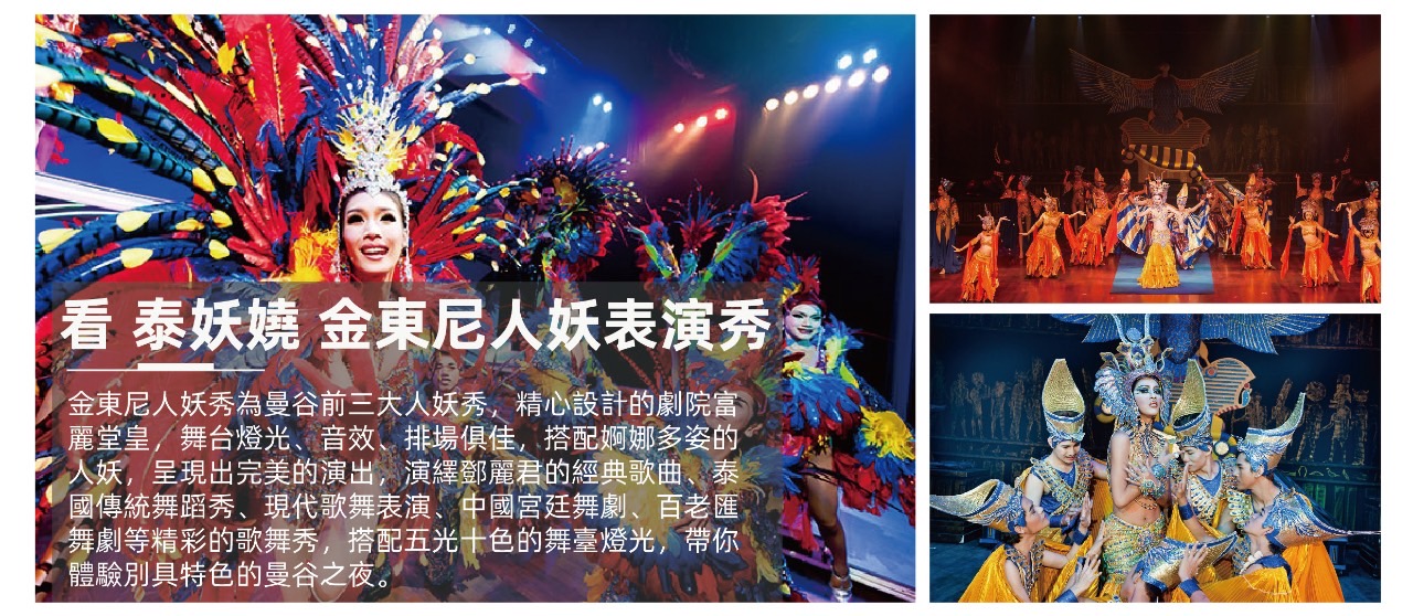 泰國最頂級最精彩的【金東尼人妖表演秀】金東尼人妖秀為曼谷前三大人妖秀,精心設計的劇院富麗堂皇,舞台燈光、音效、排場俱佳,搭配婀娜多姿的人妖,呈現出完美的演出,演繹鄧麗君的經典歌曲、泰國傳統舞蹈秀、現代歌舞表演、中國宮廷舞劇、百老匯舞劇等精緻的歌舞秀,搭配五光十色的舞台燈光,帶你體驗別具特色的曼谷之夜
